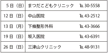 ■下妻市休日在宅当番医 午前9時30分~午後4時