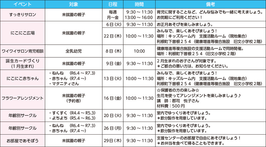 問い合わせ:とね子育て支援センター(文間保育園内)