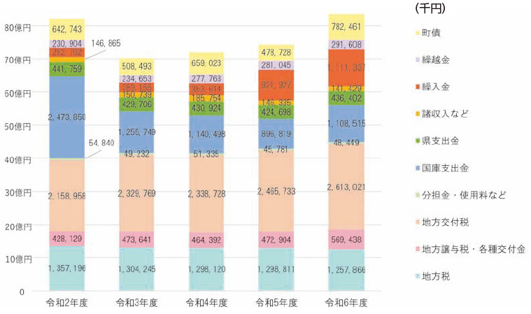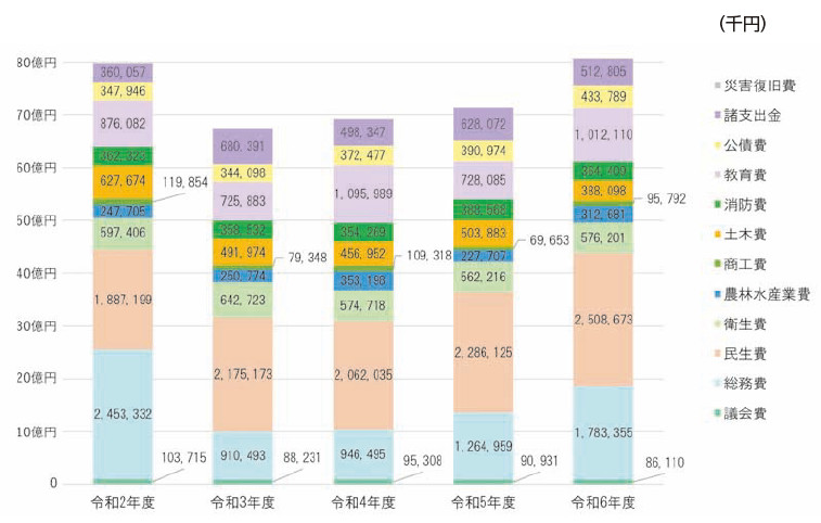 令和6年度決算は、庁舎大規模改修工事費の増加に伴い、一般会計においては前年度に比べ歳入で927,745千円、歳出で932,850千円の増加となりました。