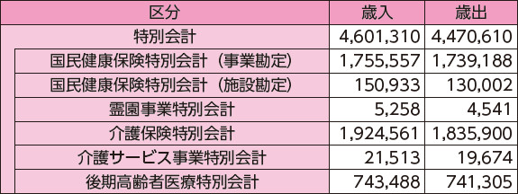 特定の事業を行うため、一般会計と区分けして設けた会計です。