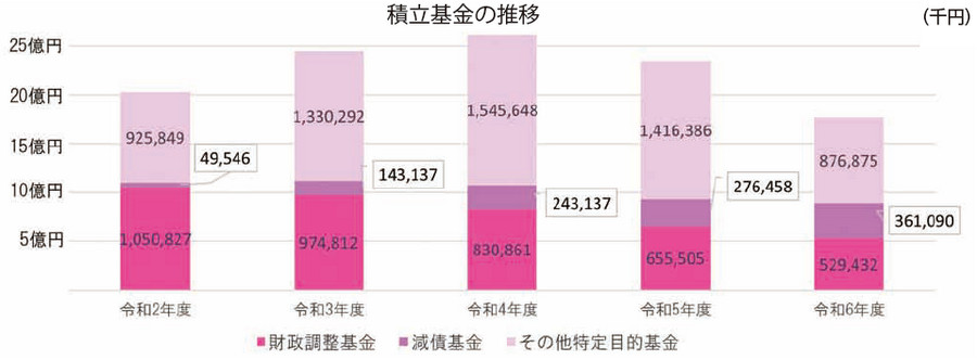 安定的な財政運営のため、基金については適切な取り崩しと、目的に応じた積み立てを行っており、今後も必要な財源確保に努めてまいります。