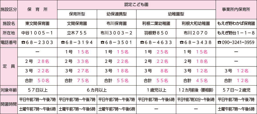 ※掲載内容は令和7年11月現在のものです。内容が変更となることもありますので、必ず各保育所などにご確認ください。