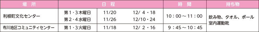 ※初めてご参加の方は利根町保健福祉センターまでご連絡ください。