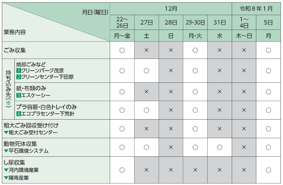 年始は令和8年1月5日(月)から、通常通り、ごみステーションに出してください。