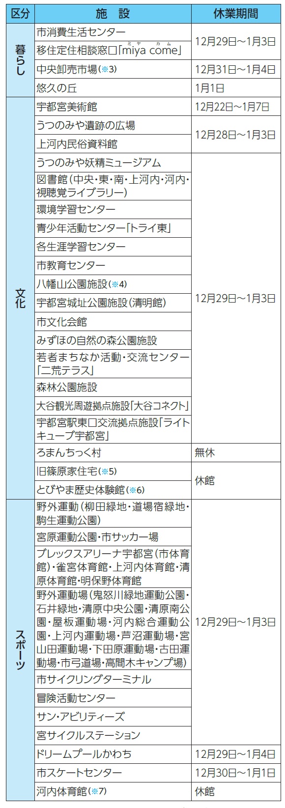 ※4 宇都宮タワーのみ、1月1日(木・祝)午前7時20分~10時に無料開放。