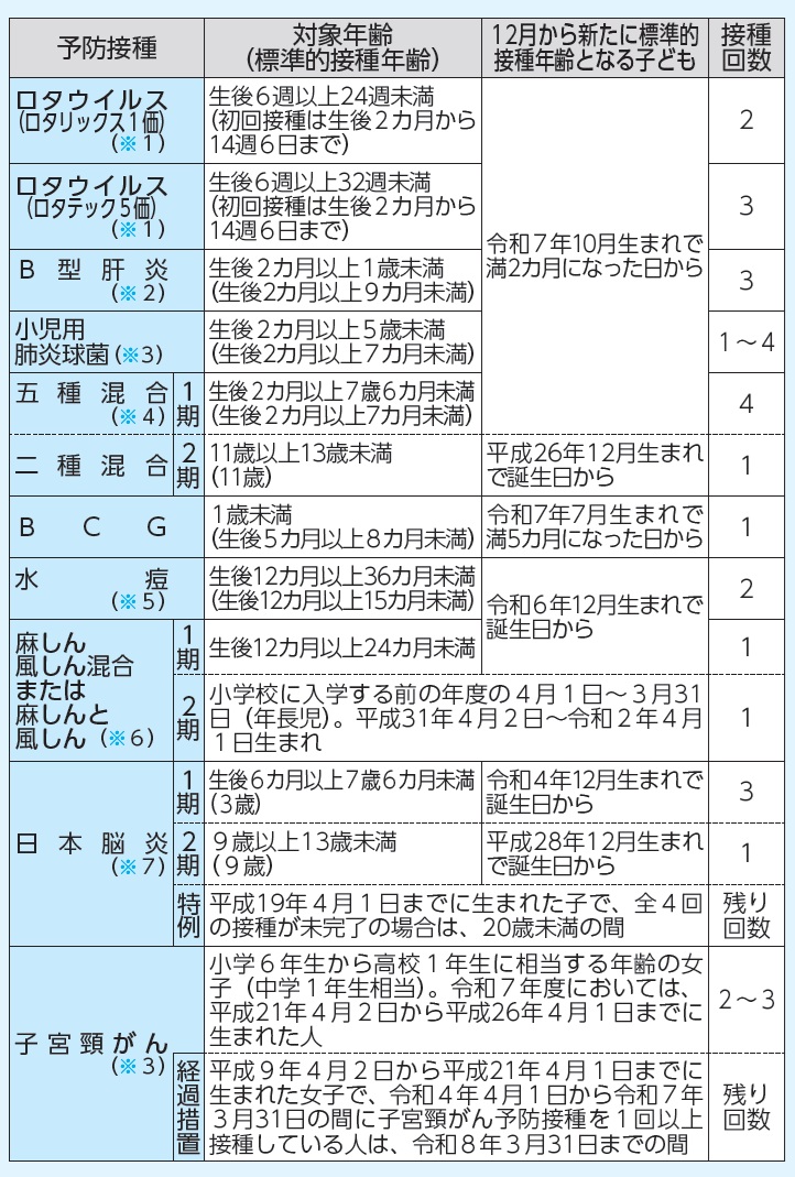 ※3 接種開始年齢によって接種回数・間隔が異なります。詳しくは、保健予防課へお問い合わせください。