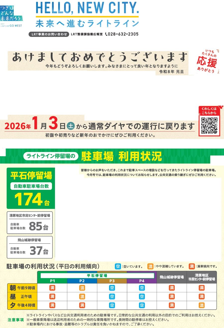 くらし 未来へ進むライトライン 11/65 前の記事 次の記事 発行日 : 2026年01月01日 自治体名 : 栃木県宇都宮市 広報紙名 : 広報うつのみや 2026年1月号 No.1798 Tweet シェアする あなたのやさしさと思いやりが福祉のまちをつくります こころのユニバーサルデザイン 1月17日は「防災とボランティアの日」命を守る自助と共助の取り組み(1)