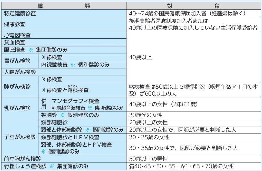 ※その他、肝炎ウイルス検診や歯科健診があります。