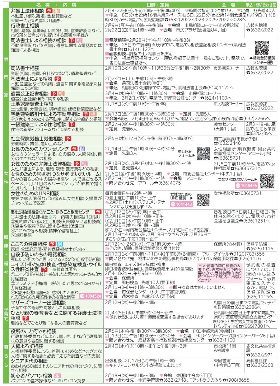 相談対象は市内在住か通勤通学者(弁護士法律相談は市内在住者のみ)