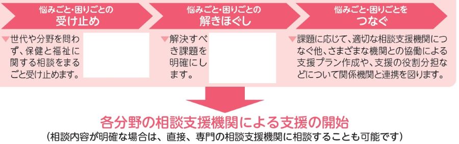 本市では、支えたり支えられたりして助け合って生きていく「地域共生社会」の実現を目指しています。エールUでは、保健と福祉に関する困りごとについて、本人だけでなく、家族や地域など、誰でも相談をすることができます。