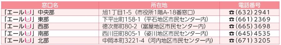 ・市役所本庁舎と4カ所の地区市民センター(平石、富屋、姿川、河内)に設置した地域保健福祉担当。