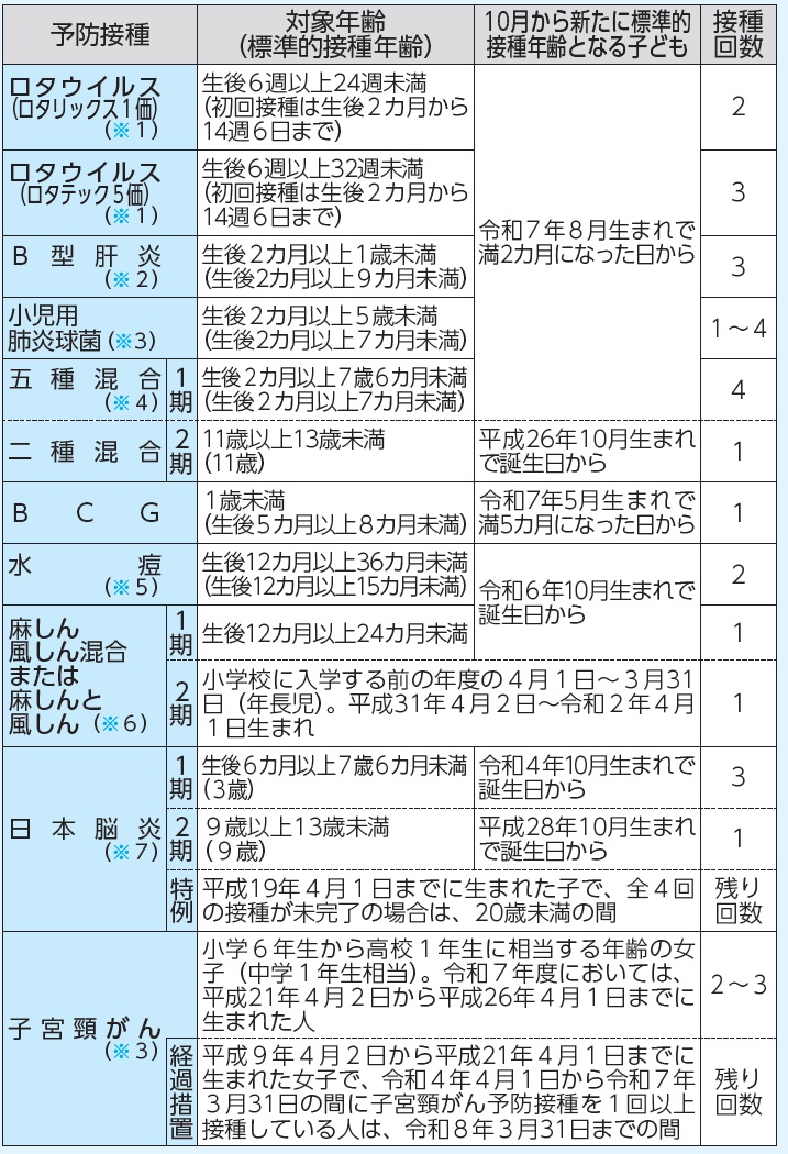 ※3 接種開始年齢によって接種回数・間隔が異なります。詳しくは、保健予防課へお問い合わせください。