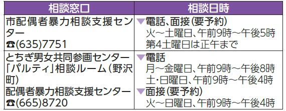 本市では、国の「女性に対する暴力をなくす運動(11月12~25日)」と「女性に対する暴力撤廃国際日(11月25日)」が実施される11月を「うつのみやDV根絶強化月間」と定め、DV防止や女性の人権を守る啓発活動に取り組んでいます。