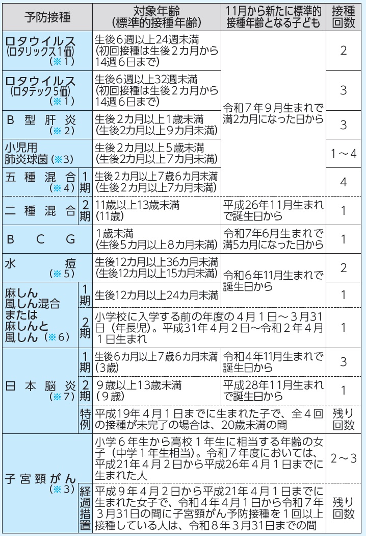 ※3 接種開始年齢によって接種回数・間隔が異なります。詳しくは、保健予防課へお問い合わせください。