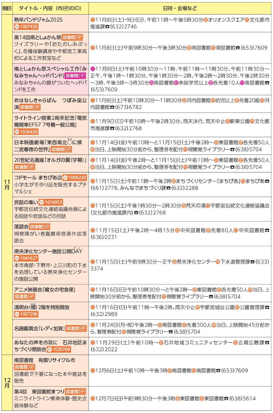 - 広報紙名 : 広報うつのみや 2025年11月号 No.1796