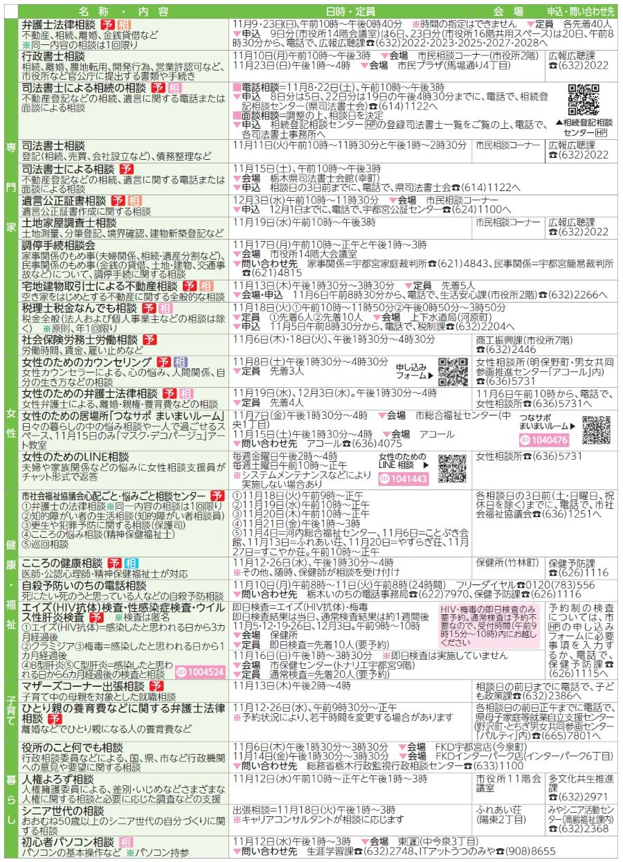 ・相談対象は市内在住か通勤通学者(弁護士法律相談は市内在住者のみ)