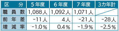 ※3カ年計の増減率は4年度比の数値、各年の増減率はそれぞれ前年度比の数値。職員数には、定年前再任用短時間勤務職員、会計年度任用職員、県からの派遣職員は含みません。