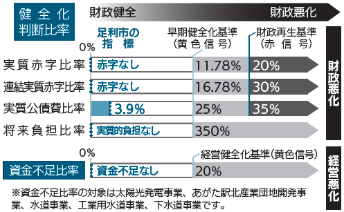 いずれの指標も国の基準を下回り、財政状況は健全であるという結果が出ました。なお、この指標は、基準より低い数値であるほど、財政状況が健全であると判定されます。
