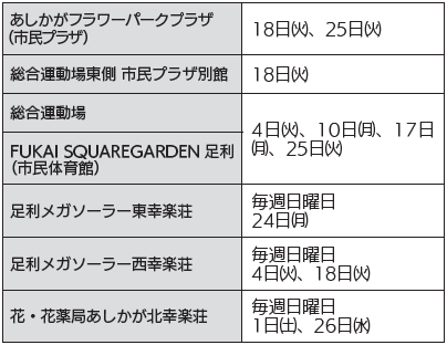 ※その他施設の休館日はこちら(本紙PDF版27ページ参照)