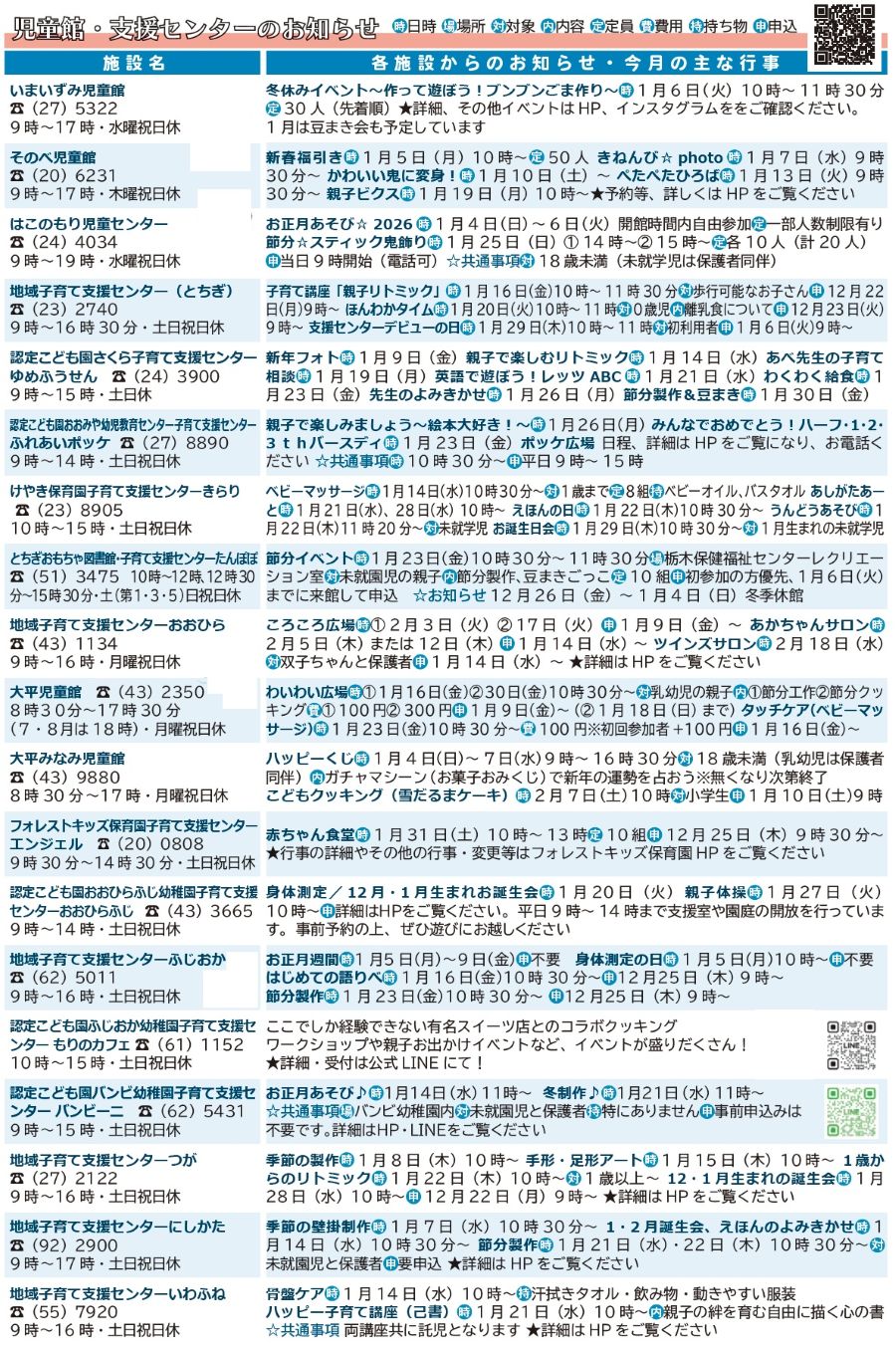 子育て 児童館・支援センターのお知らせ 30/42 前の記事 次の記事 発行日 : 2025年12月19日 自治体名 : 栃木県栃木市 広報紙名 : 広報とちぎ No.189 令和8年1月号 Tweet シェアする Child Care Support 子育て広場 Health Promotion 健康情報