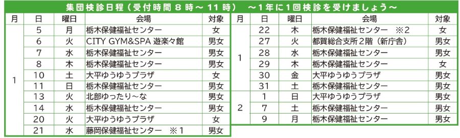 ※2 1/22は託児サービスを実施します。(完全予約制となります。詳しくはけんしんガイドブックをご覧ください。)