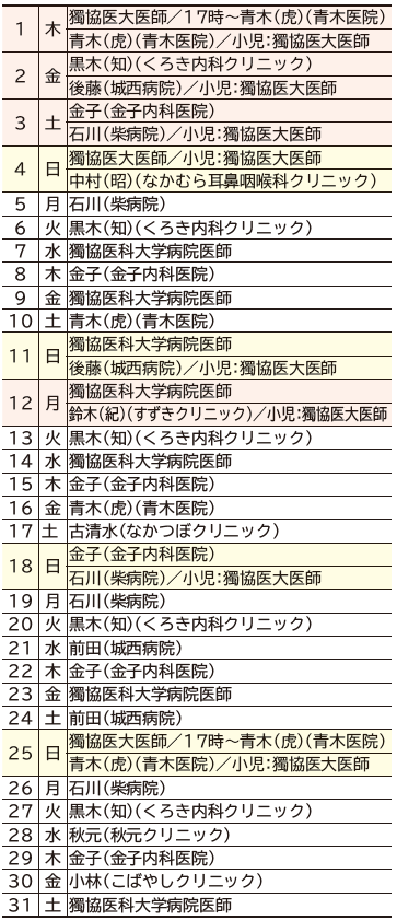 当番医(下表)は変更になる場合もあります。症状によっては、急患センターでの対応が困難な場合があります。
