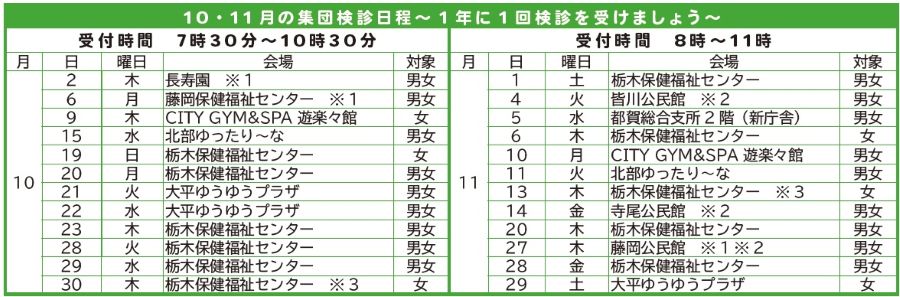 ※3 10/30、11/13は託児サービスを実施します。(完全予約制となります。詳しくはけんしんガイドブックをご覧ください。)