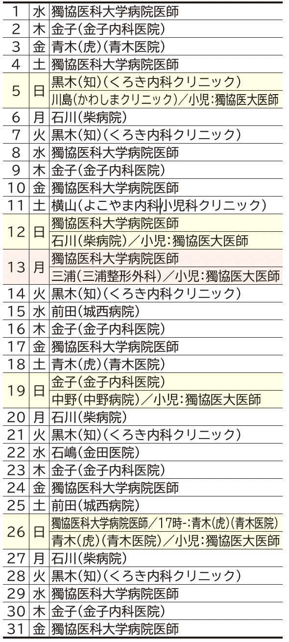 当番医(右表)は変更になる場合もあります。症状によっては、急患センターでの対応が困難な場合があります。