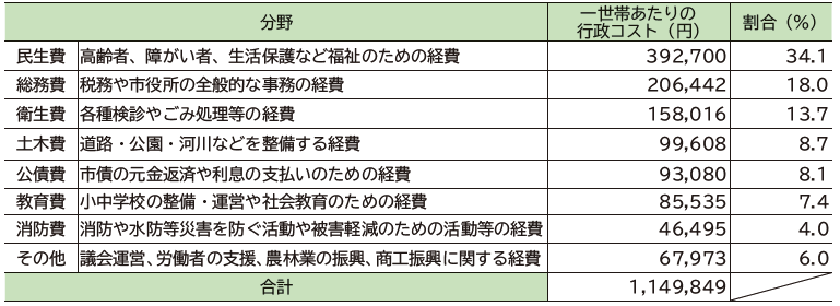 ●一世帯あたりの行政コスト(令和7年3月31日現在世帯数:67,981世帯)