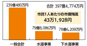 一般会計、水道事業、下水道事業で借り入れを行っています。