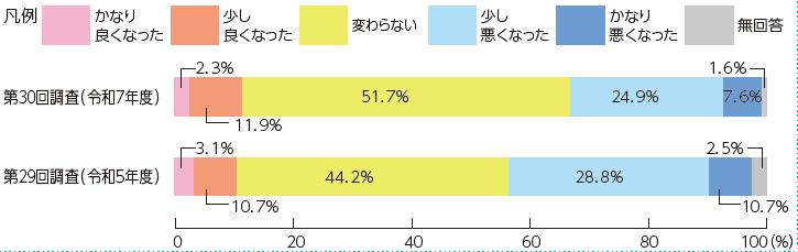 ▽あなたの暮らし向きや生活環境は、この2、3年の間にどう変わりましたか?
