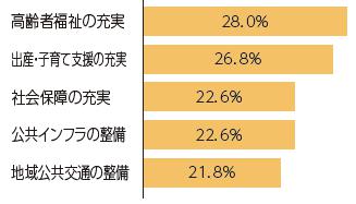「高齢者福祉の充実」「出産・子育て支援の充実」など、子育て、福祉、地域公共交通の関心が高いことがうかがえます。