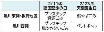 2月11日(水・建国記念の日)および2月23日(月・天皇誕生日)は通常どおりごみ収集を行います。午前8時30分までにごみステーションに出してください。