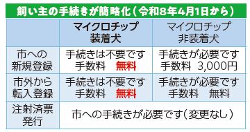 令和8年4月1日から、飼い主の情報を記録したマイクロチップを装着した飼い犬は、市への登録手続きが不要になり、窓口で納める手数料が無料になります。また、マイクロチップを装着していると鑑札(飼い犬の登録を証明する標識)の代わりになります。