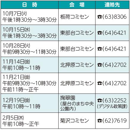 東分館:10月7日(火)~10日(金)【電話】63-4646