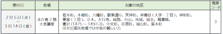 *申告会場には「出張所会場」と「市役所会場」があります。お住まいの地区の対象会場にお越しください。