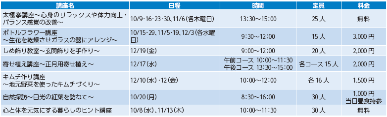 ※必要事項 講座名・住所・氏名・年齢・電話番号