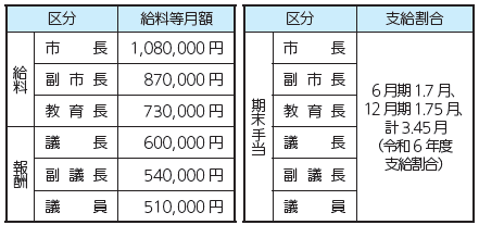 ※特別職の報酬は、小山市特別職報酬等審議会の答申を受けて定められています