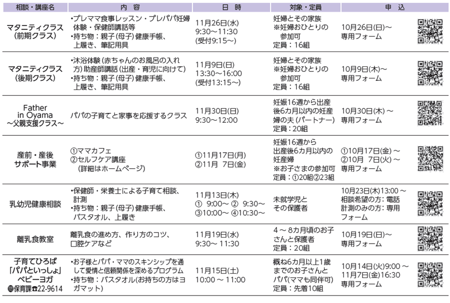 子育て 子育て世帯向け情報 19/31 前の記事 次の記事 発行日 : 2025年10月01日 自治体名 : 栃木県小山市 広報紙名 : 広報おやま 2025年10月号 場所:市役所3階 検診室 問合せ:子育て家庭支援課 【電話】22-9525 Tweet シェアする ≪Oyama Kids Studio≫ お子さんの写真募集中 information《お知らせ》(1)