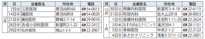 ※年末年始(12/29(月)~1/4(日))の小児科の診療は「那須地区夜間急患診療所」で行います。詳細は、本紙P10をご覧ください。