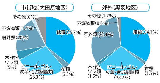 市では「もやせるごみ」の中身を調べる「ごみの組成分析」を行っています。