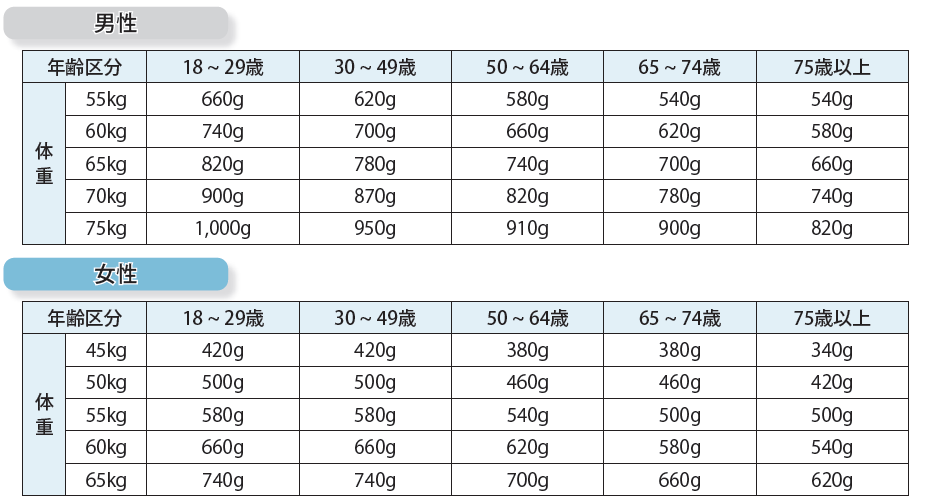 ※代謝には個人差があること、また毎日の生活に変化があることを考慮し、おおよその量を示しています。