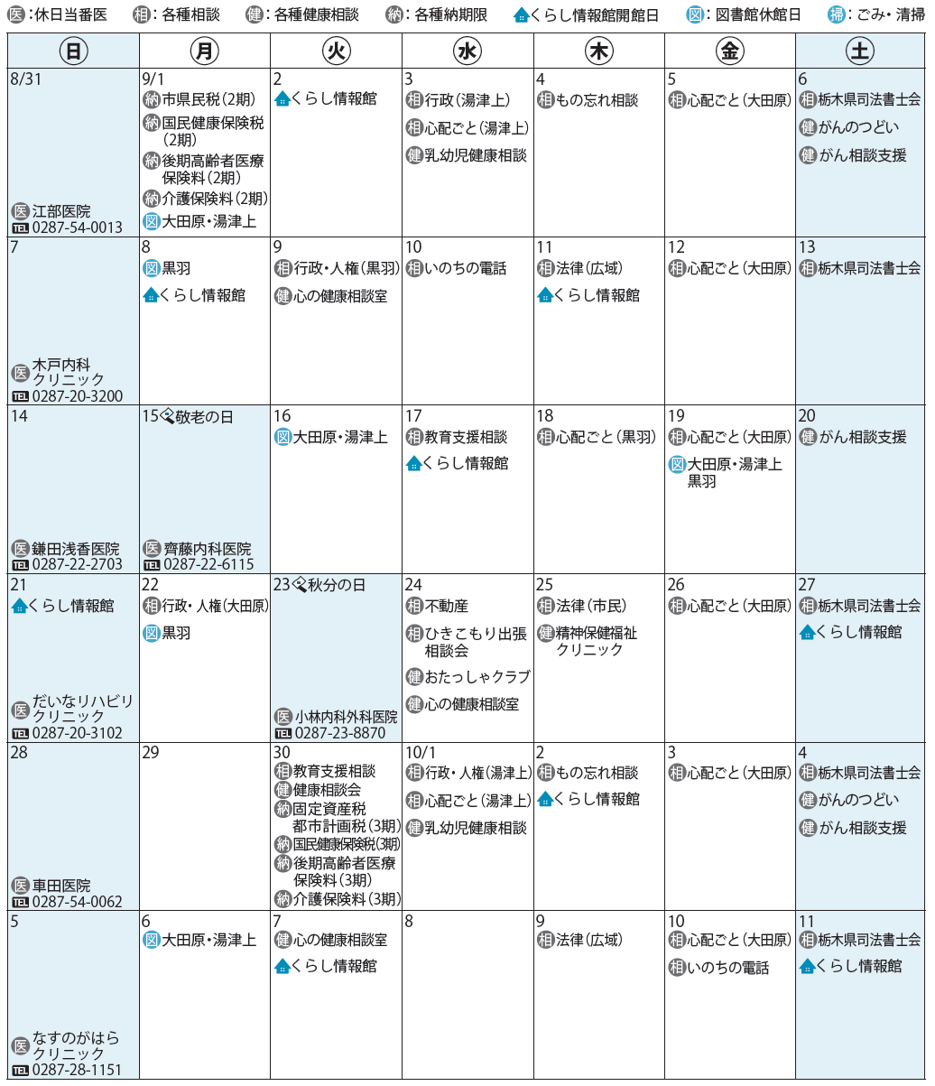 - 広報紙名 : 広報おおたわら 令和7年9月号(No.1338)