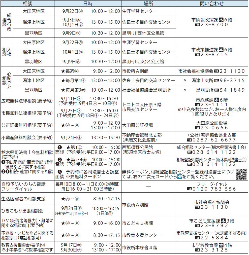 くらし 各種相談 32/40 前の記事 次の記事 発行日 : 2025年09月01日 自治体名 : 栃木県大田原市 広報紙名 : 広報おおたわら 令和7年9月号(No.1338) ★…祝日・年末年始を除く。 ※大田原市の市外局番は「0287」です。携帯電話からかける際はご注意ください。 Tweet シェアする 休日当番医 子育て支援情報