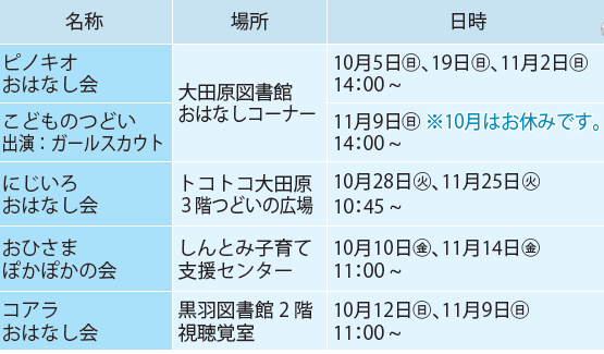 申込方法:10月25日(土)~11月13日(木)に大田原図書館へ直接または電話で申し込み