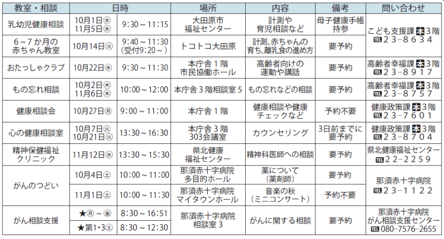 健康 保健に関する教室・相談 43/49 前の記事 次の記事 発行日 : 2025年10月01日 自治体名 : 栃木県大田原市 広報紙名 : 広報おおたわら 令和7年10月号(No.1339) ★…祝日・年末年始を除く。 Tweet シェアする 子育て支援情報 集団健康診査 予約状況(9月9日現在)