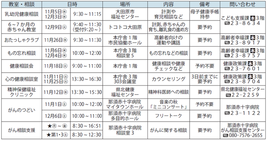 健康 保健に関する教室・相談 37/43 前の記事 次の記事 発行日 : 2025年11月01日 自治体名 : 栃木県大田原市 広報紙名 : 広報おおたわら 令和7年11月号(No.1340) ★…祝日・年末年始を除く。 Tweet シェアする 子育て支援情報 集団健康診査 予約状況(10月14日現在)