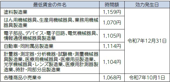 ※各種商品小売業の最低賃金の改定はなく、県の最低賃金と同額です。