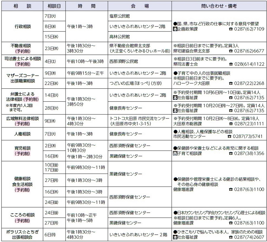 くらし 一人で悩まず困ったら相談を 10月の各種無料相談カレンダー 20/24 前の記事 次の記事 発行日 : 2025年09月20日 自治体名 : 栃木県那須塩原市 広報紙名 : 広報なすしおばら 令和7年9月20日号(ナンバー438) Tweet シェアする 地域おこし協力隊奮闘記 10月の休日当番医