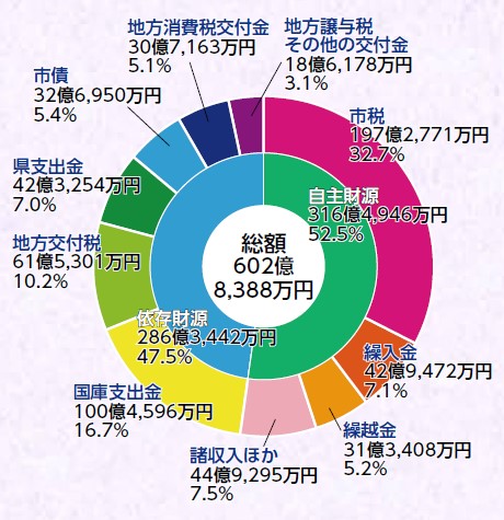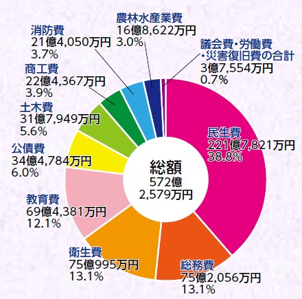 [歳入]602億8,388万円-[歳出]572億2,579万円-[翌年度への繰越額]1億6,163万円=[実質収支額]28億9,646万円